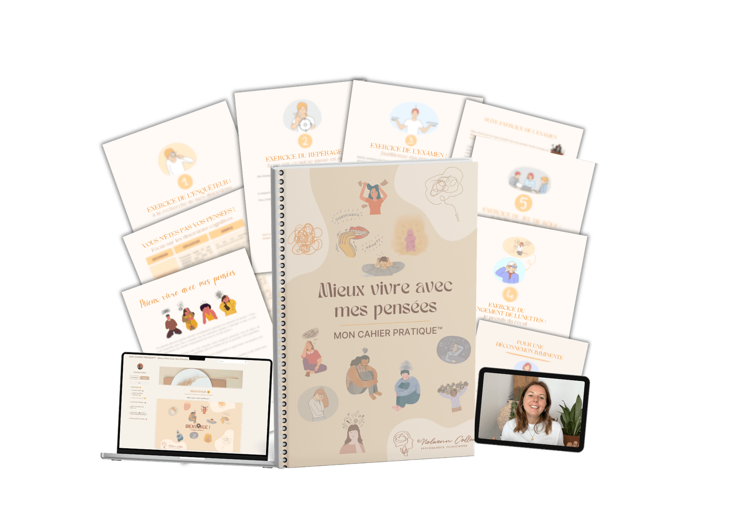 Il m’est donc apparu comme une évidence de créer des programmes sur les sujets qui reviennent le plus (émotions, anxiété, peur, pensées, confiance en soi), incluant toujours un Cahier Pratique™ pour la mise en application de la théorie.